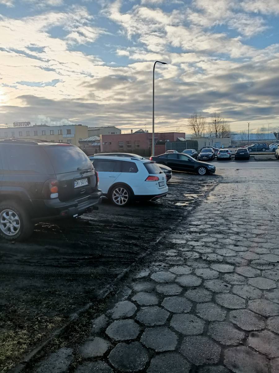 Przemysłowa 45. Nielegalny parking na trawniku. Czy służby miejskie tylko dbają o prawidłowe parkowanie samochodów i trawniki pod prezydium?