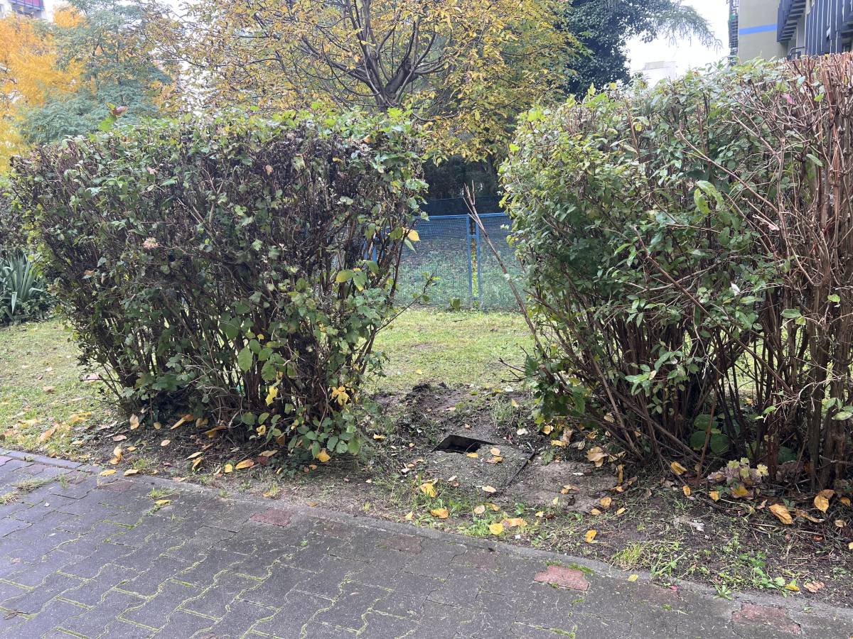 Zgłaszamy uszkodzoną studzienkę teletechniczną znajdującą się w pasie zieleni obok budynku przy ul. Jaracza 25-31 w Tychach. W załączeniu dokumentacja zdjęciowa.