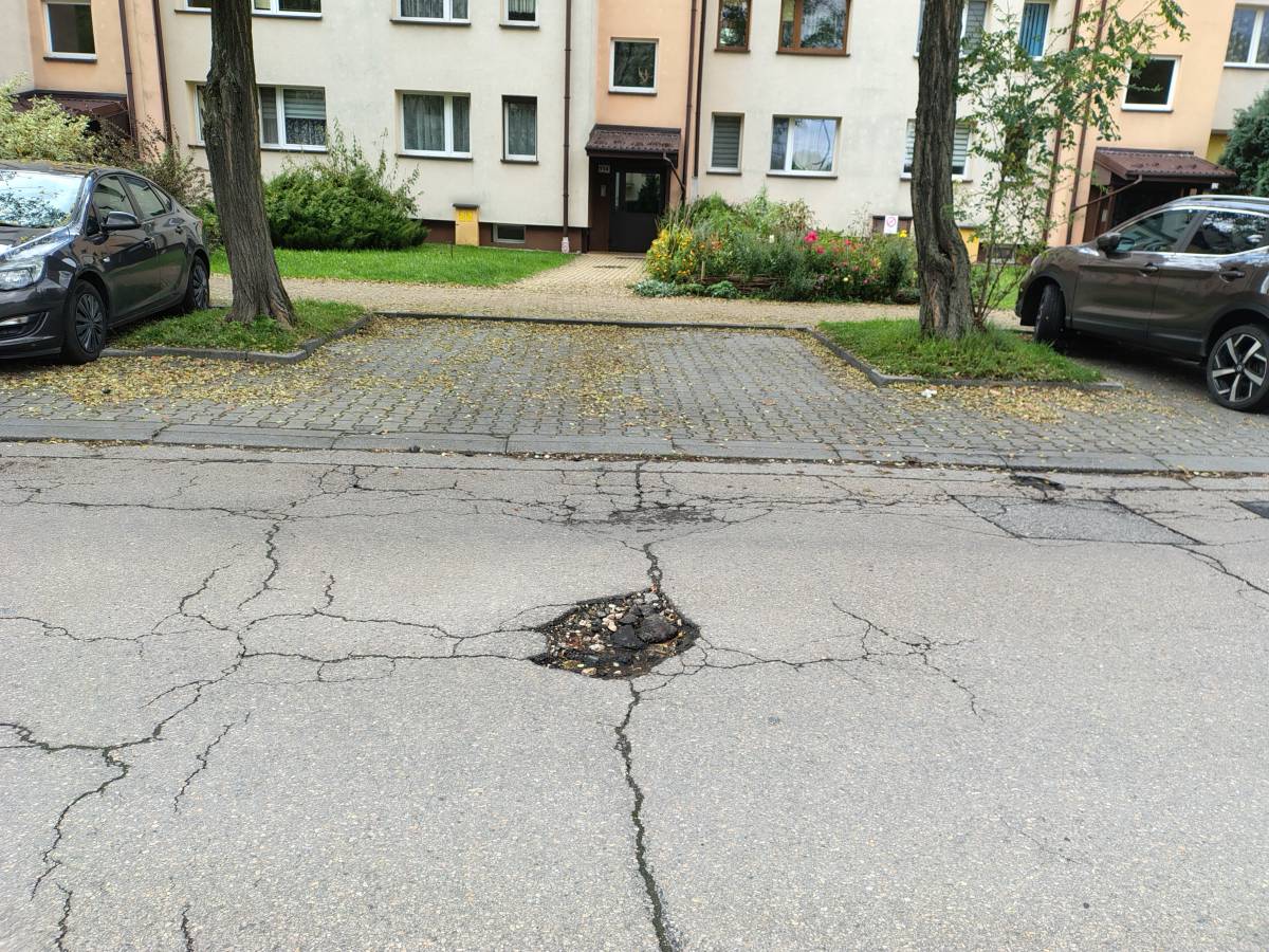 Na ulicy Jordana ( po skręcie z al. Piłsudskiego za ok.20 m, naprzeciwko klatki o adresie Piłsudskiego 114 ) od dłuższego czasu jest dziura.
