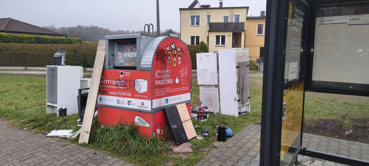 Dzikie wysypisko obok pojemnika do elektrośmieci