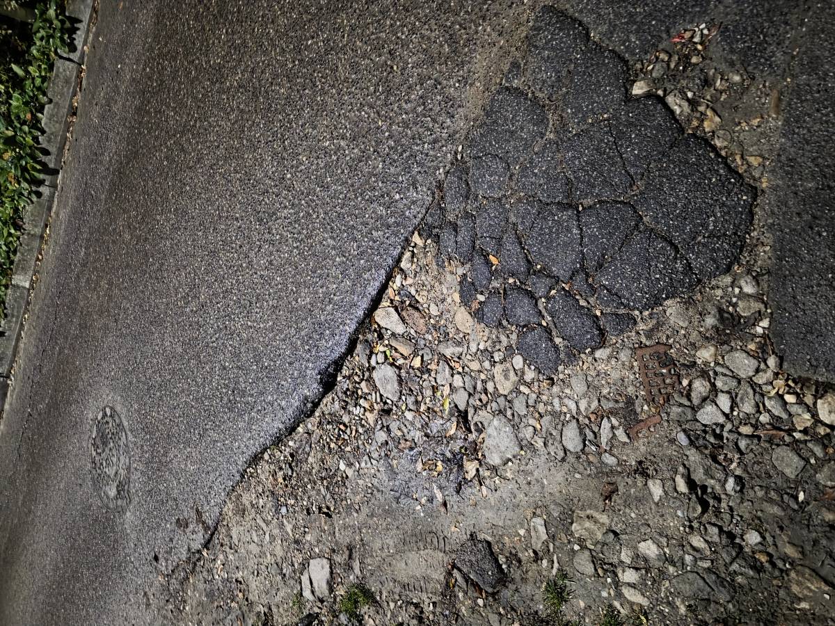 Uszkodzona droga na łączeniu ulicy Młyńskiej z Wąska.