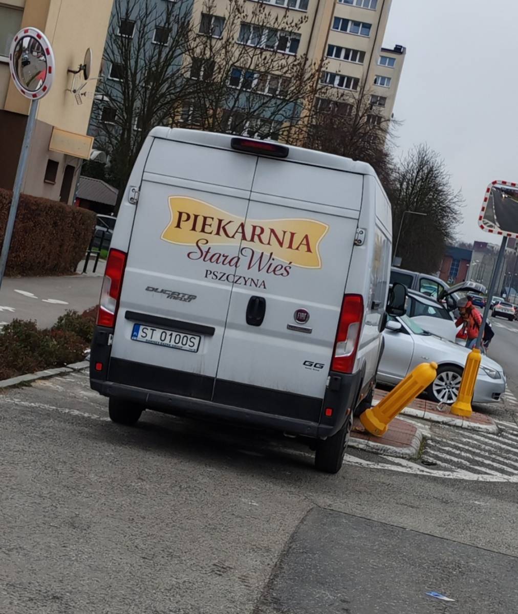 Chciałem zgłosić uszkodzony słupek przy ulicy Dąbrowskiego 43 (obok sklepu Lewiatan). Prawdopodobnie został wyłamany przez dostawcę widocznego na zdjęciu, ale nie byłem świadkiem samego zdarzenia.
