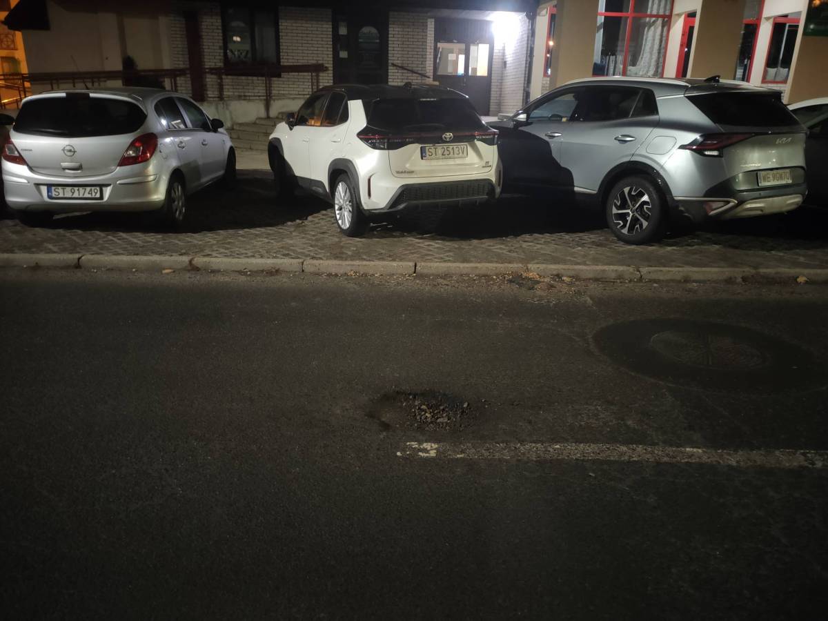 ul Mysliwska 4, na wysokości Dentica stomatologia spora dziura w jezdni