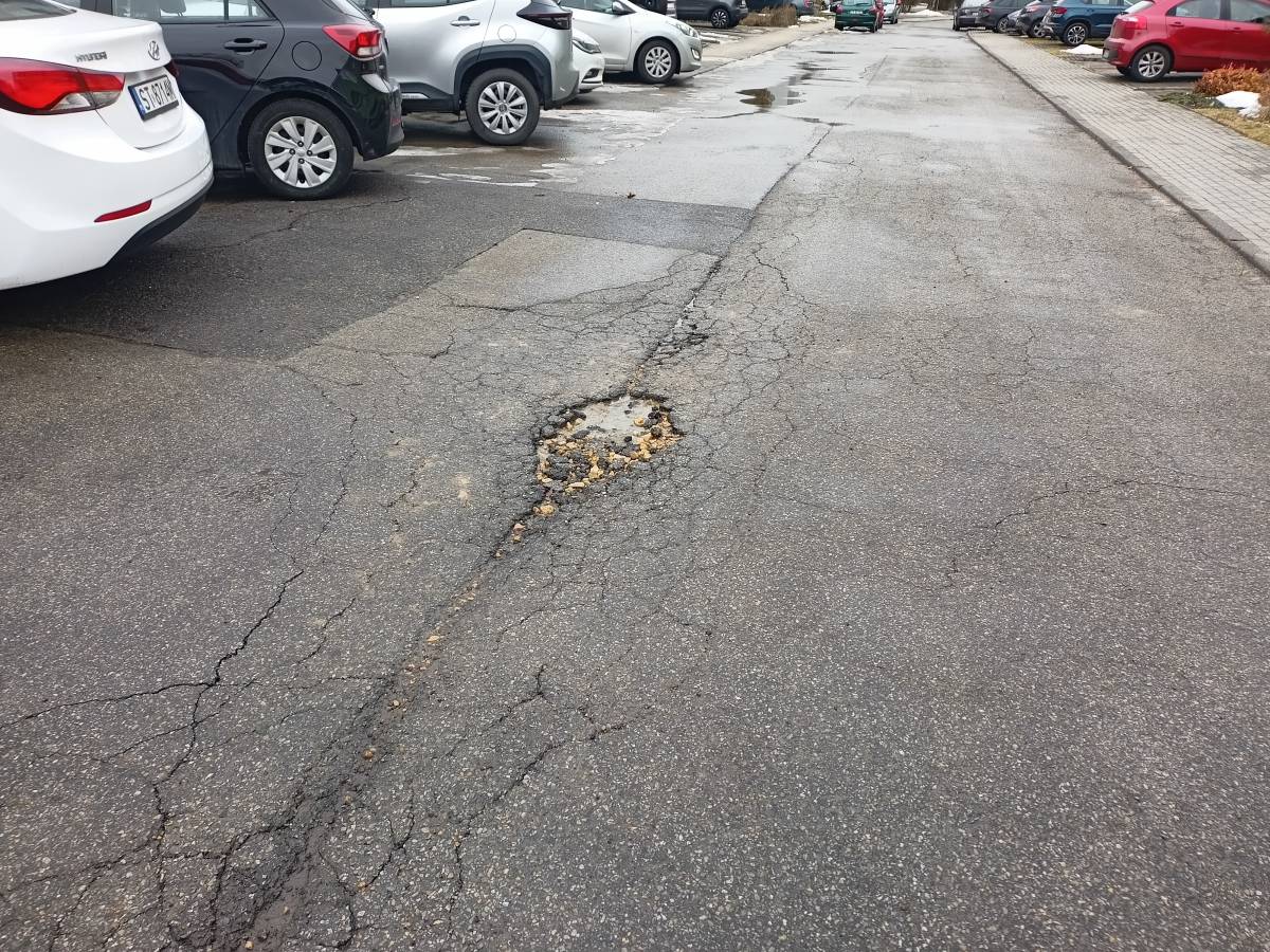 Ubytki nawierzchni zostały zlecone do naprawy Wykonawcy w ramach remontów cząstkowych nawierzchni i zostaną zrealizowane zgodnie z kolejnością zleceń przy sprzyjających warunkach atmosferycznych.