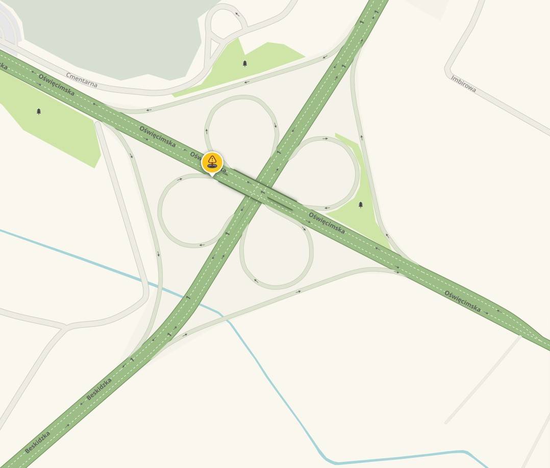 Koniec łącznika DK1 -> DK44. Dziura w jezdni