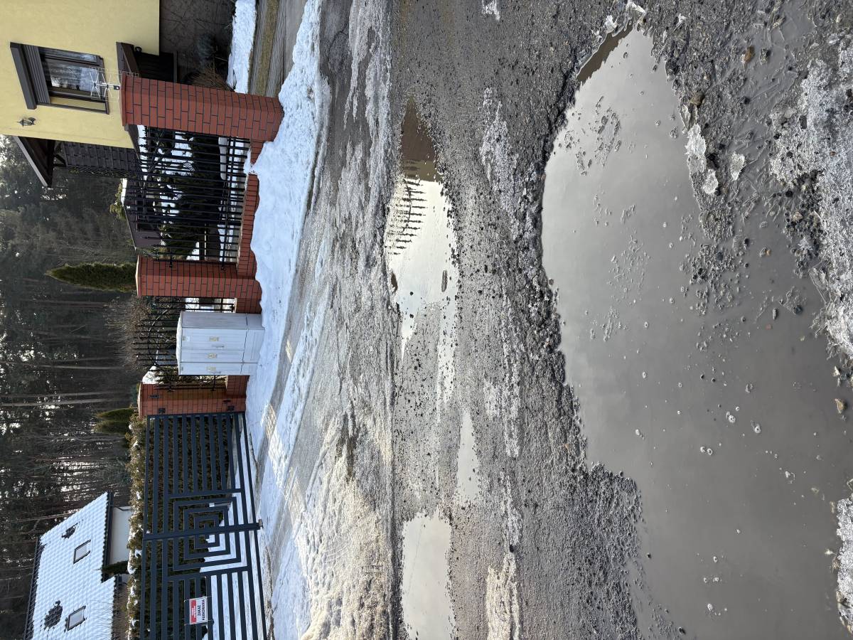 Duża dziura na końcu ulicy Kolejowej, sama ulica kolejowa również wymaga naprawy kilku dziur