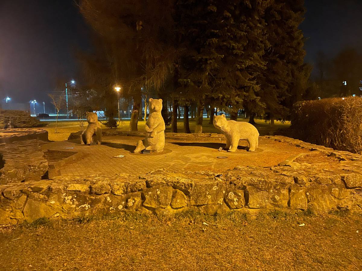 Niedziałające oświetlenie rzeźb niedźwiadków w parku niedźwiadków