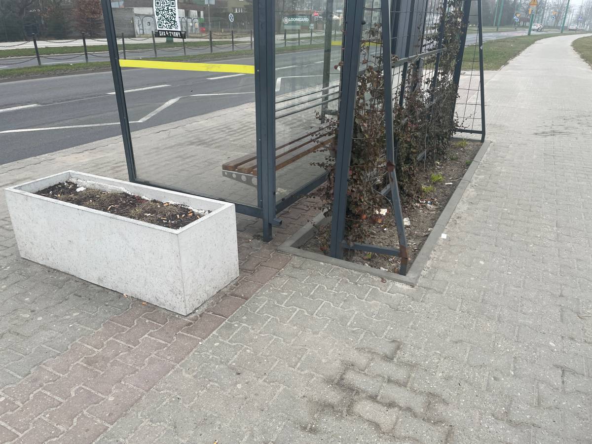 Proszę o zlecenie uprzątnięcia i w przyszłości regularnego sprzątania tego zielonego przystanku. Niestety obecnie te przystanki w całym mieście są zaniedbane.