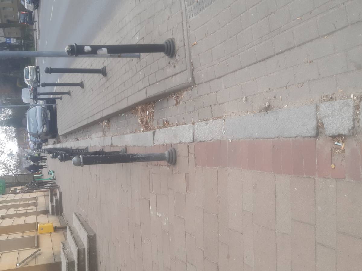 Proszę o pozamiatanie lisci pomiędzy ulica Biblioteczną a chodnikiem