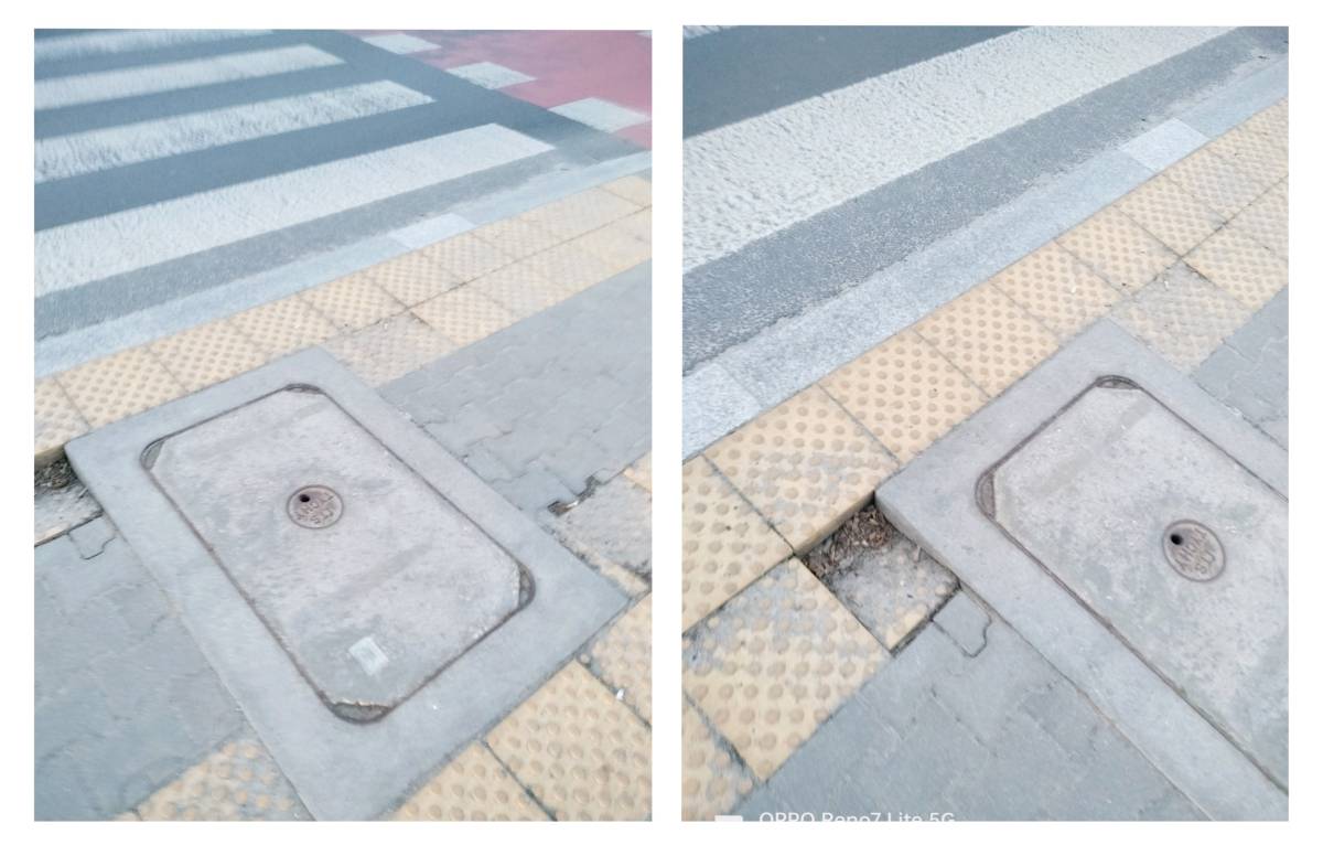 Na wysepce na przejściu dla pieszych na os.F (skrzyżowane ul. Wyszyńskiego z ul. Edukacji) obok piekarni Kłos płytka w chodniku jest "wciśnięta" (przy studzience teletechnicznej), powodując dla pieszych ryzyko potknięcia, upadku, złamania nogi.
