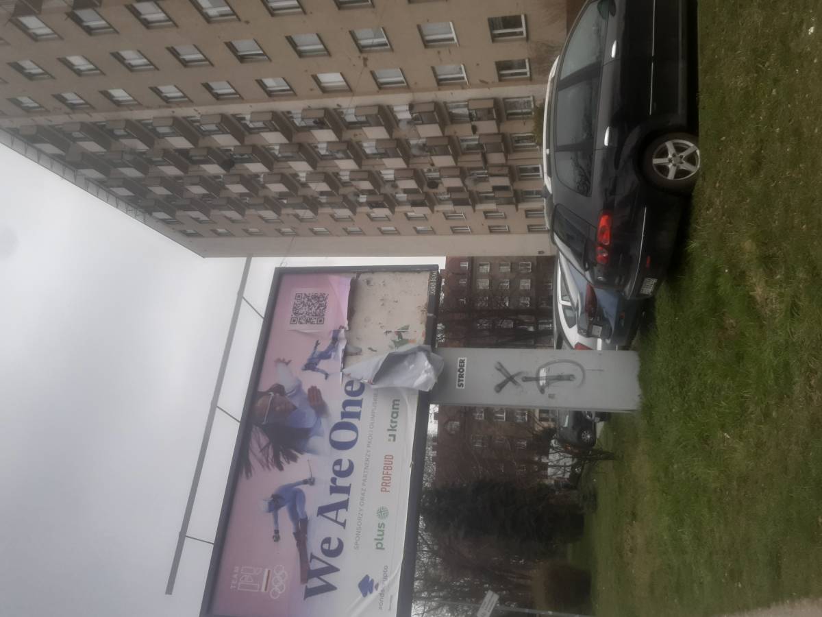 Przy przystanku Tychy Targowisko zrywa się się dużą reklama