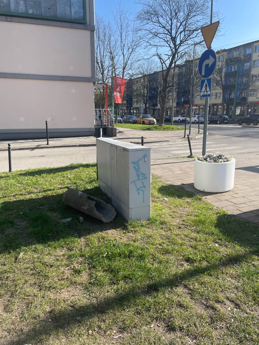 Zalegający od lat element betonowy za tablicami elektrycznymi Tychy ul. Grota-Roweckiego