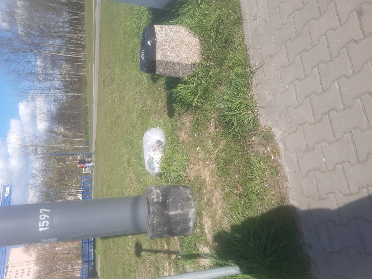 Proszę o zabranie porzuconego worka ze śmieciami przy rondzie przy hotelu Tychy, proszę również o pozbieranie śmieci ktorecnawoal wiatr na tym terenie zielonym.
